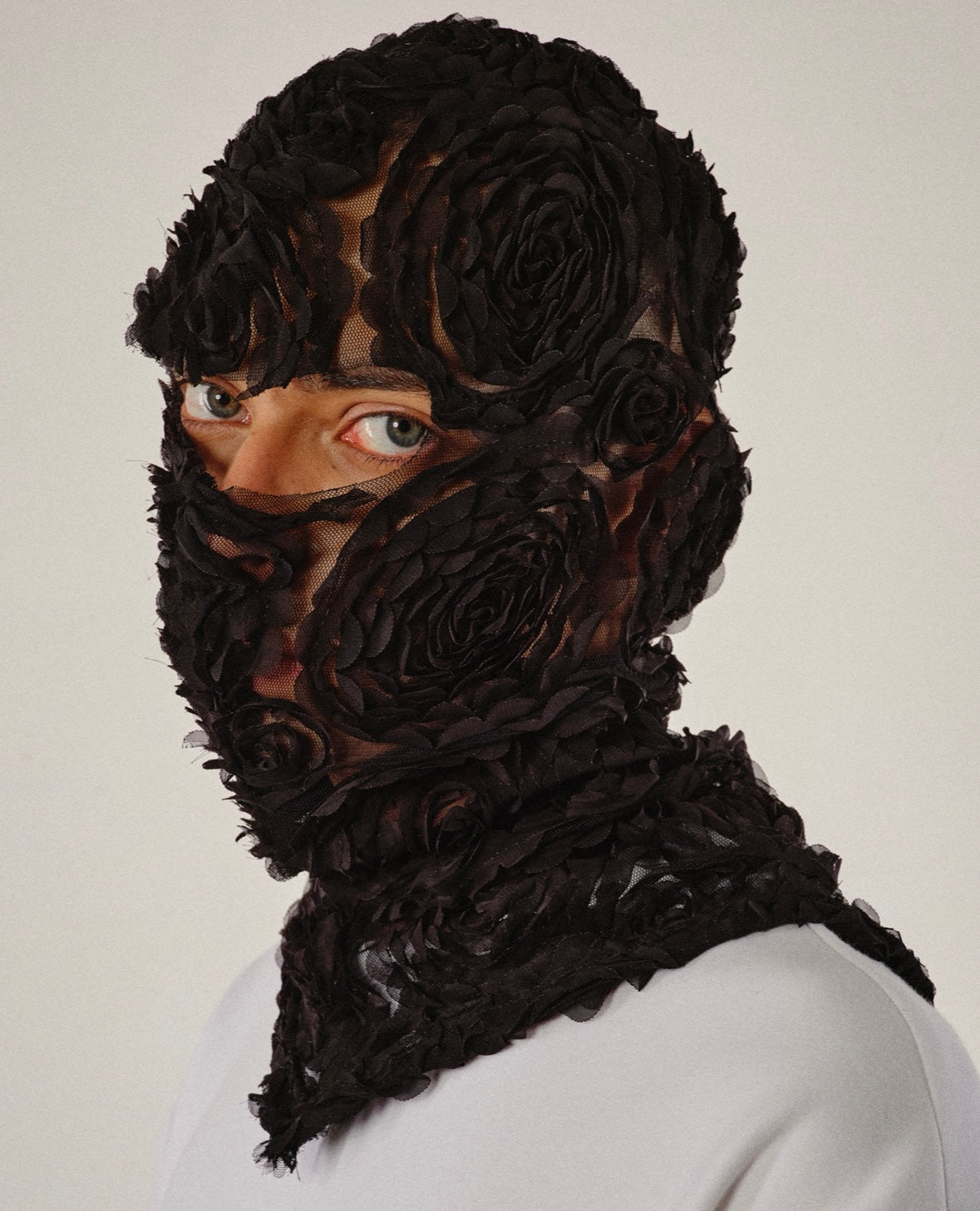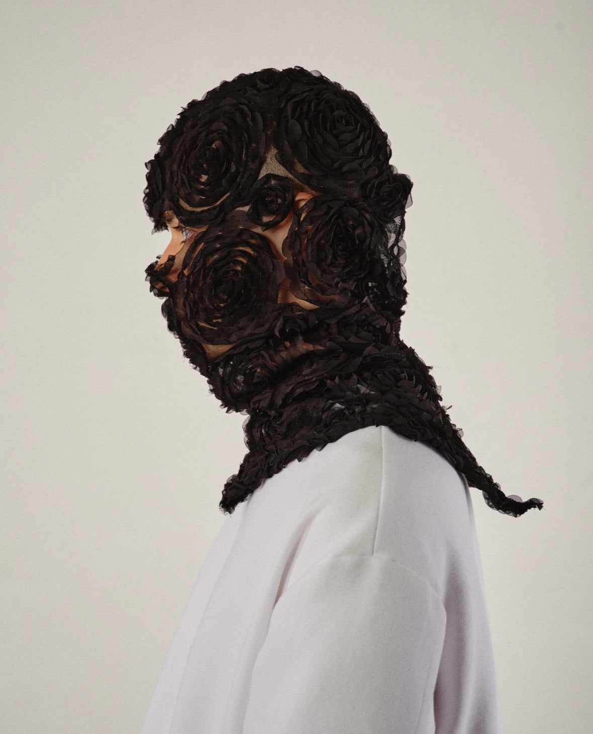 Pièce unique. Assemblage de fleurs sur base de tulle synthétique.