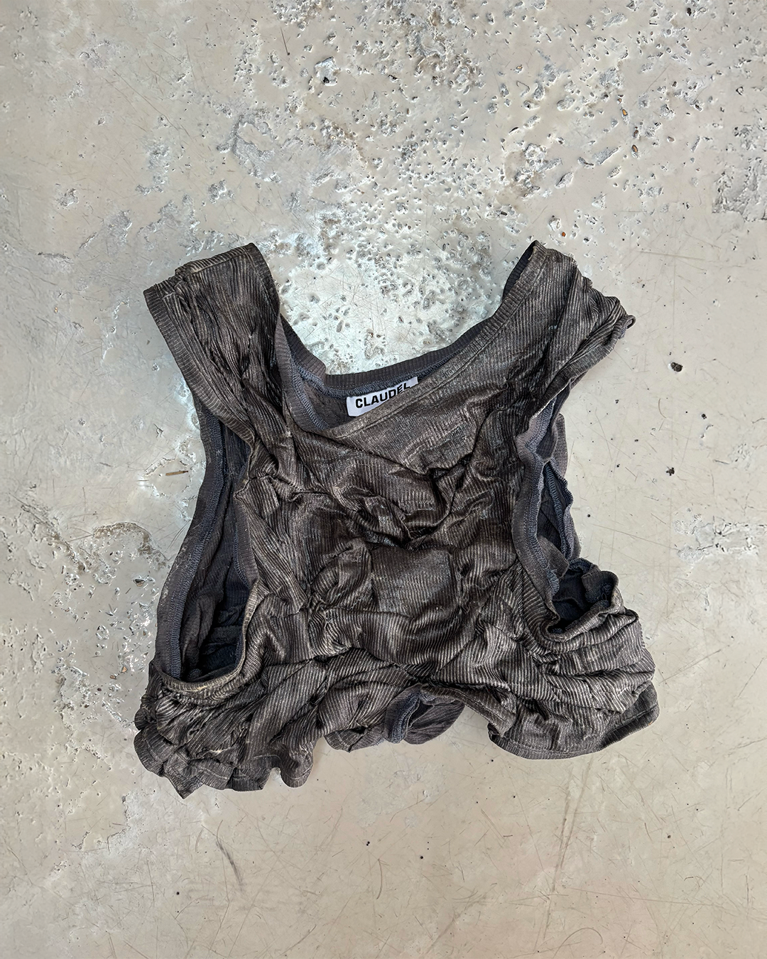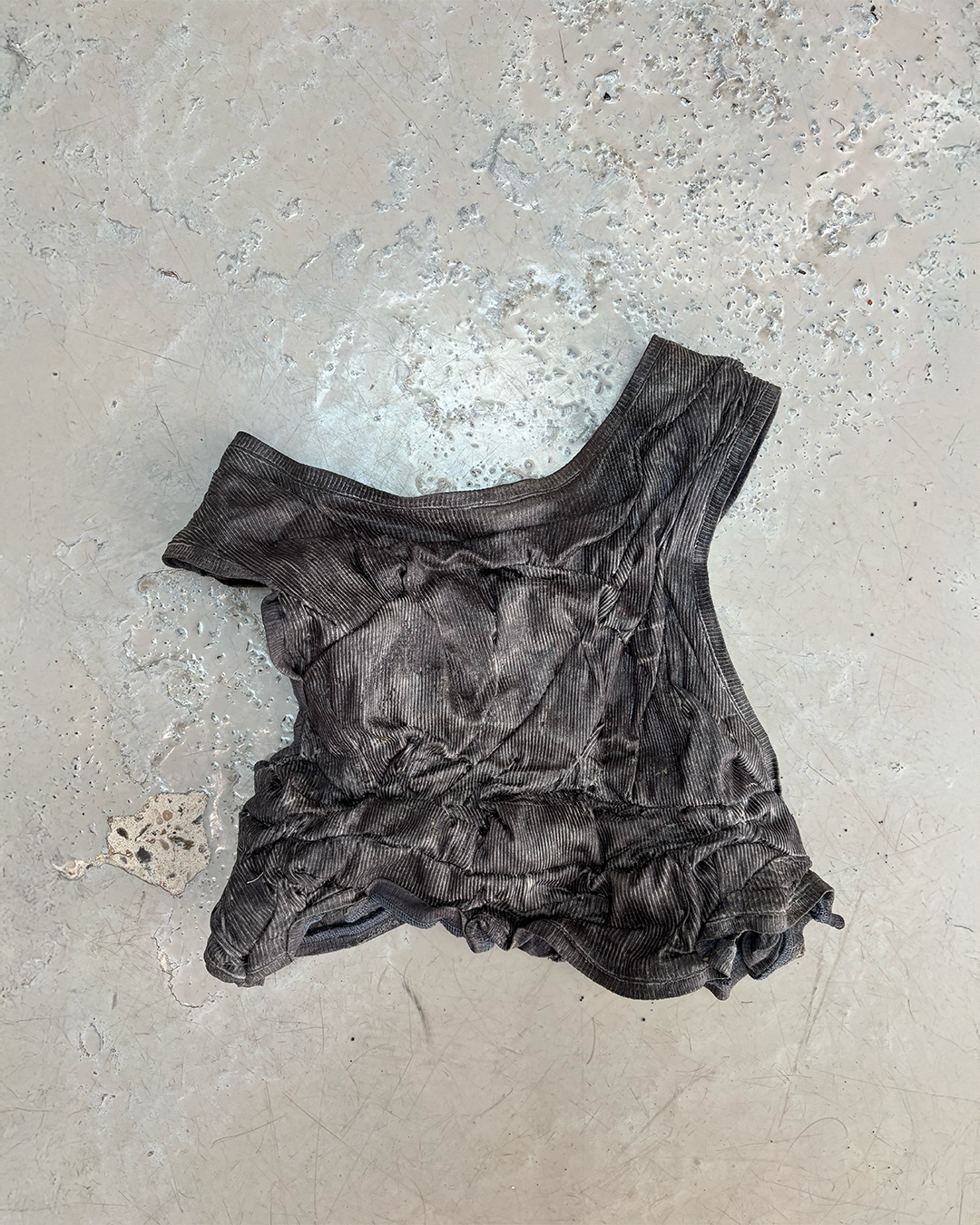 Jersey de coton côtelé charcoal enduit de silicone, froissé à la main.