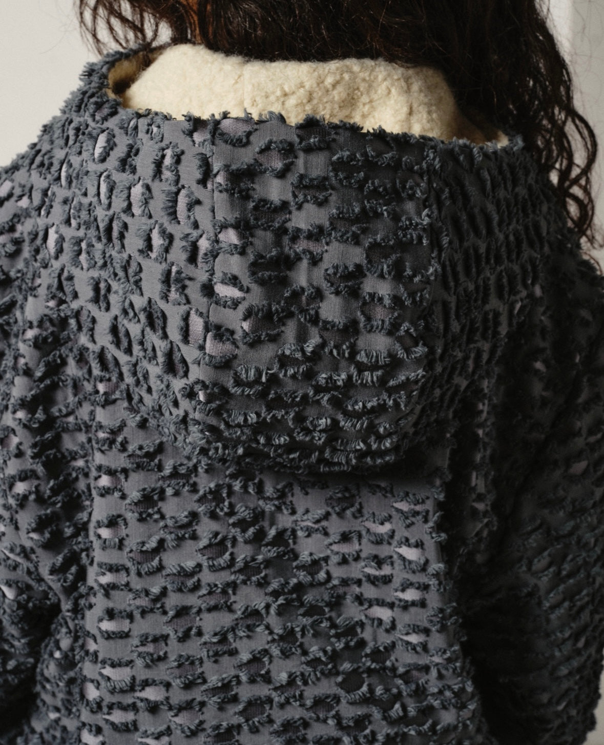 Matière synthétique destroy, poches à soufflets double entrée à rabat et zip, poches à rabats et soufflets sur les manches, capuche à col montant doublée en fausse fourrure, ouverture zippée, doublure polyester.
